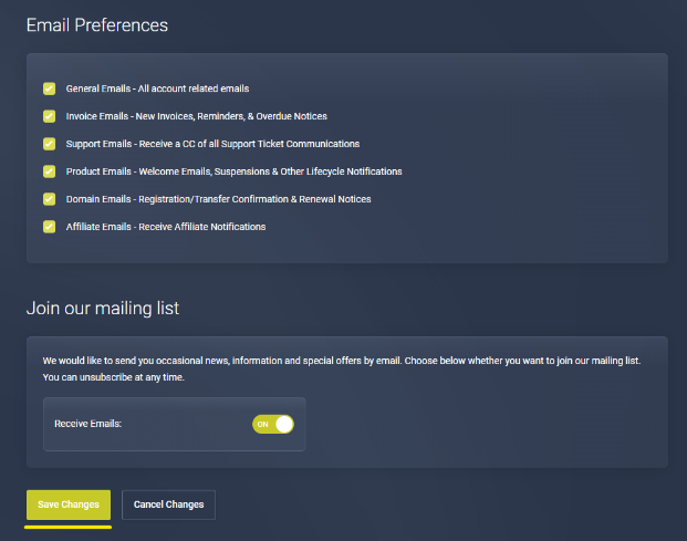 By changing your details in the Billing Panel, you are not updating your sign in details on panel logins for Web, Game, VPS, or Dedicated Server panels.