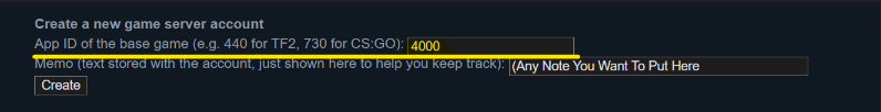 - Create your token. Set the App ID to “4000”, this will create a token for your GMod server.\