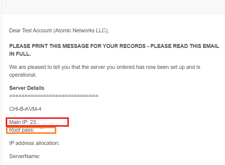 - Main IP: You will need this to connect to your VPS.