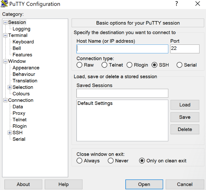 Download the latest version of PuTTy from the website. Remember to select the correct bit version for your computer.